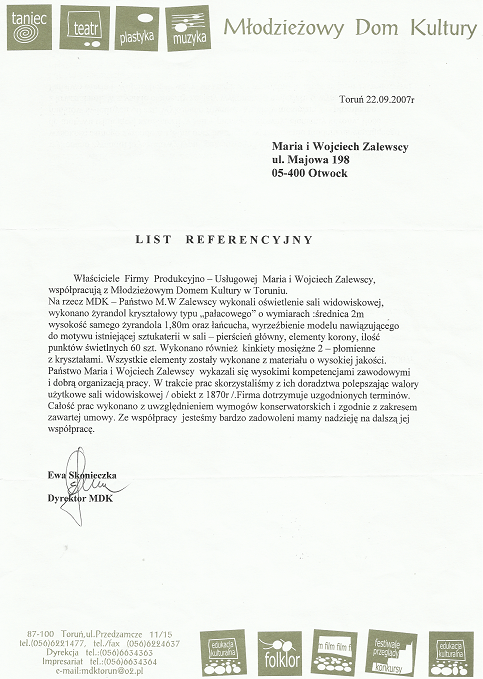 Od początku naszej działalności dostarczamy stylowe przedmioty dla Klientów z Polski i zagranicy. Główną gałęzią produkcji w naszej firmie są wyroby oświetleniowe, ale podejmujemy się realizacji najróżniejszych, często nietypowych zamówień na przedmioty i elementy z mosiądzu. Gwarantujemy solidność i konkurencyjność wykonanych wyrobów oraz terminowość dostaw, podpartych licznymi referencjami. Siedziba naszej firmy mieści się w Otwocku, ale obsługujemy Klientów z całej Polski oraz z zagranicy.