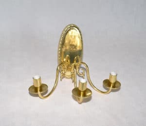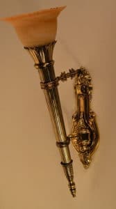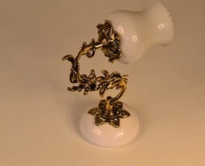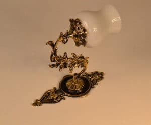 Kinkiet mosiężny jednopłomienny z kloszem,plecy-porcelanka.