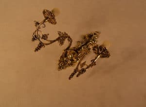 Material to odlewy mosiężne,obrobione tradycyjnie,z lekką patyną,zabezpieczone lakierem bezbarwnym.