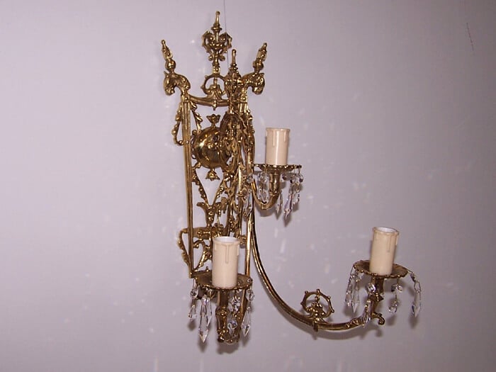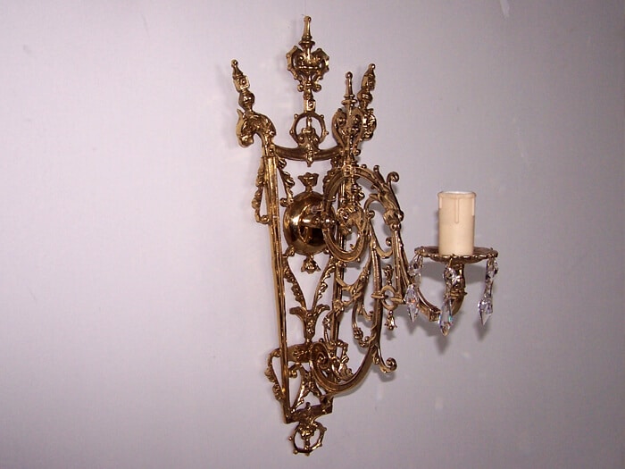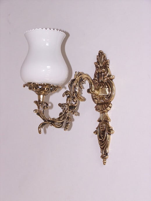 Kinkiet mosiężny jednopłomienny z kloszem,plecy-porcelanka.